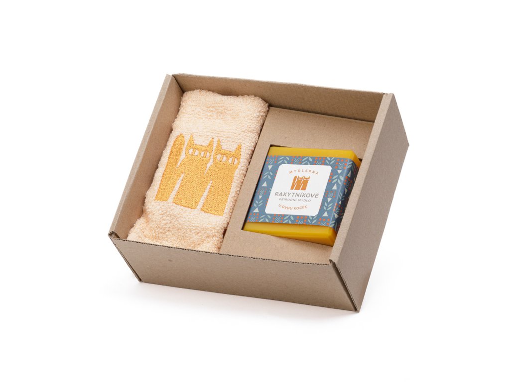 Dárková krabička s ručníčkem a rakytníkovým mýdlem