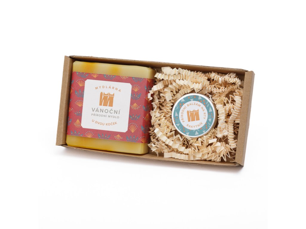 Dárkový balíček s vánočním mýdlem a rakytníkovým balzámem