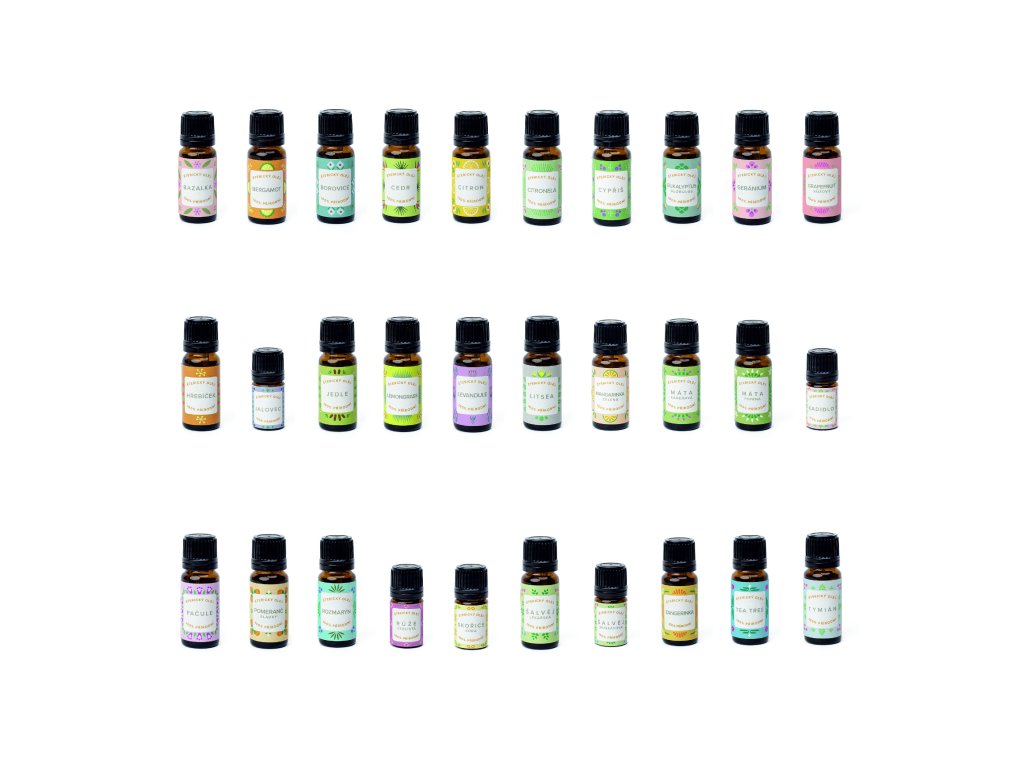 Testovací sada všech třiceti esenciálních olejů z naší nabídky je pro aromaterapeutické nadšence nebo pro ty, kteří chtějí odzkoušet co nejvíce vůní z naší mydlárny. Jako dárek přidáváme k testerům sadu aromaterapeutických karet v ručně vyráběné krabičce. Každá lahvička je naplněna 2 ml esenciálního oleje.